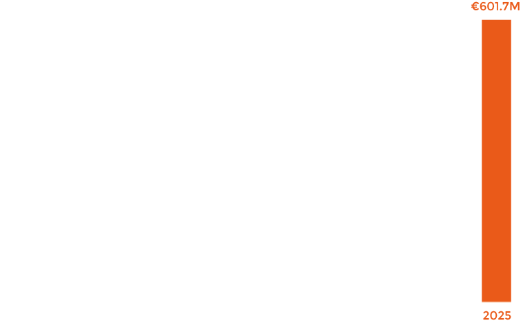 2023 : 534,1 M€. 2022 : 513,5 M€. 2021 : 470,6 M€. 2020 : 426,4 M€. 2019 : 417,8 M€. 2018 : 400,6 M€. 2017 : 348,7 M€. 2016 : 326,4 M€. 2015 : 273,8 M€.