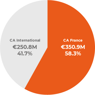 CA France : 280,5 M€ 52,5%. CA International : 253,6 M€ 47,5%